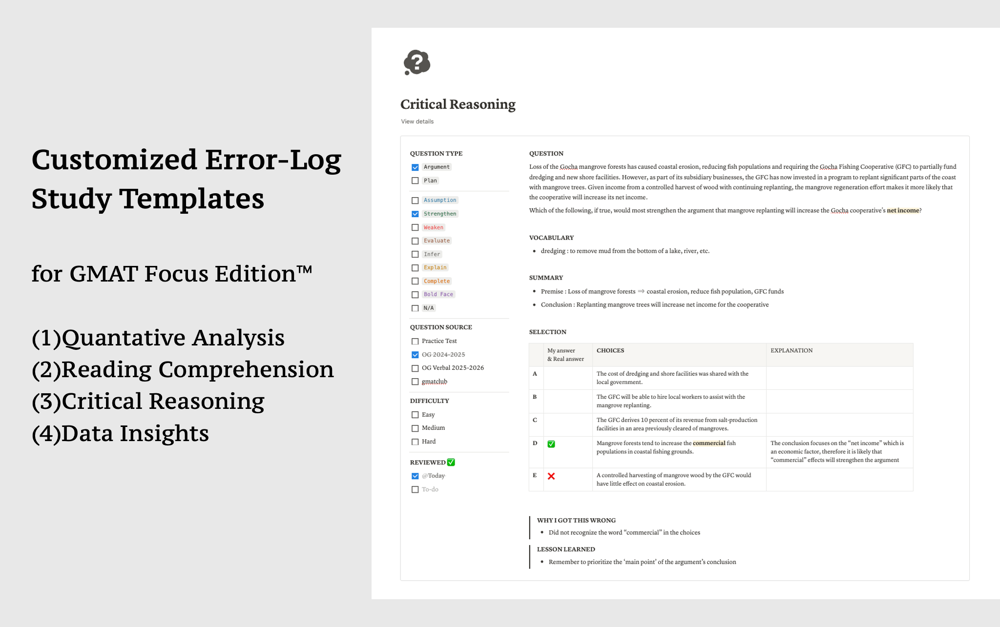 That’s why keeping track of your mistakes — and really learning from them — is essential. But I know from experience: jotting errors down randomly can get messy fast. That’s exactly why I created this Notion template.